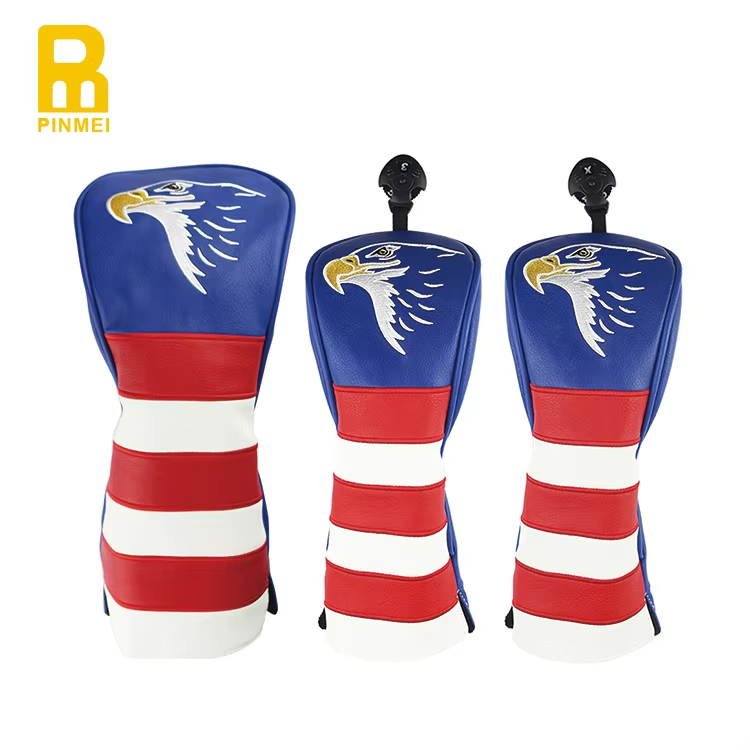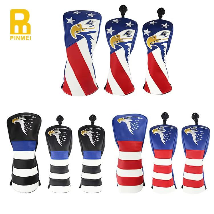 OEM özel tasarım kartal temalı su geçirmez PU deri Golf kulübü başörtüsü seti içerir sürücü Fairway ahşap ve hibrid